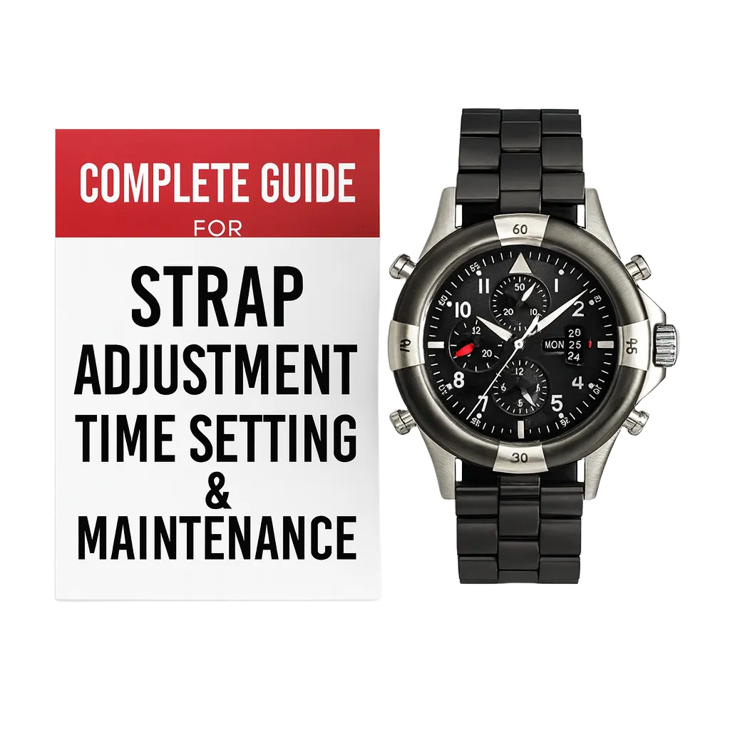 Introducing the Complete Guide for Strap Adjustment, Time Setting & Maintenance — your ultimate companion for keeping your watch perfectly fitted, accurate, and looking brand new.